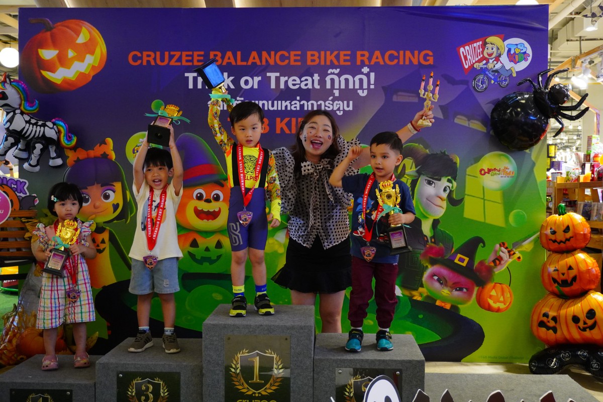 จบลงไปอย่างสนุกสนานและอบอุ่น! สำหรับกิจกรรม “Trick or Treat กุ๊กกู๋!” ในงาน Cruzee Balance Bike Racing Trick or Treat กุ๊กกู๋! 2025 ที่จัดโดย Cruzee Thailand เมื่อวันอาทิตย์ที่ 12 ตุลาคม 2568 ณ ลาน Promotion 3 ศูนย์การค้า Central Westgate บรรยากาศภายในงานเต็มไปด้ วยรอยยิ้ม เสียงหัวเราะ และพลังแห่งความสุขจากน้อง ๆ หนู ๆ ที่มาร่วมแข่งขันจักรยานขาไถสุ ดมันส์ พร้อมสนุกกับโซนกิจกรรมฮาโลวี นสุดคิวท์