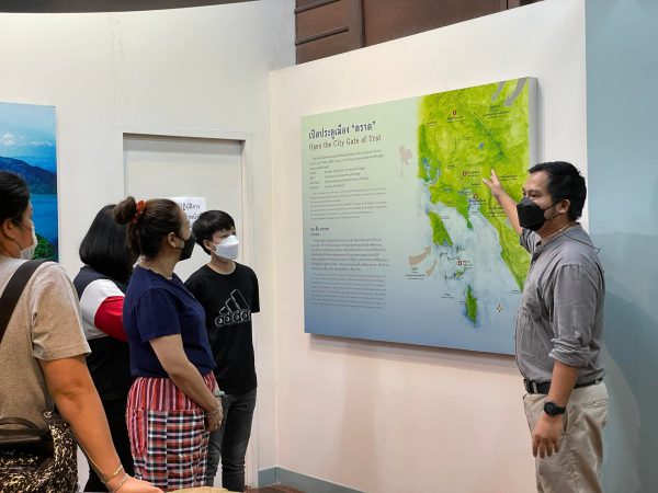 เราเข้าเรียนประวัติศาสตร์อย่างสนุกสนาน ที่ พิพิธภัณฑสถานแห่งชาติเมืองตราด กับคุณ จิณณวัทย์ อี๊ดเหล็ง ผช. เจ้าหน้าที่พิพิธภัณฑ์ ที่พาเราย้อนประวัติศาสตร์ของเมืองตราด ด้วยภาพเล่าเรื่อง แผนที่เมือง ของสำคัญ ตามห้องต่าง ๆ แบบเพลิน ๆ ขำ ๆ เพราะมุขปิดท้ายโซนเล่าเรื่องของสำคัญแบบให้นักเรียนจำ ถ้าทำข้อสอบนี่คงได้คะแนนเต็ม เล่าย้อนประวัติศาสตร์ครั้งใด สิ่งหนึ่งที่คงไว้ซึ่งความภูมิใจของบ้านเราก็คือ การรักษาเมืองของกษัตริย์ของเรา ทุกรัชกาลที่ทรงพระปรีชาสามารถรักษา ประเทศบ้านเมืองให้รอดพ้นจากการยึดครองของต่างชาติ….และเมืองตราดก็เป็นเช่นนั้น และเราจะไม่ลืมประเทศฝรั่งเศสแน่นอน